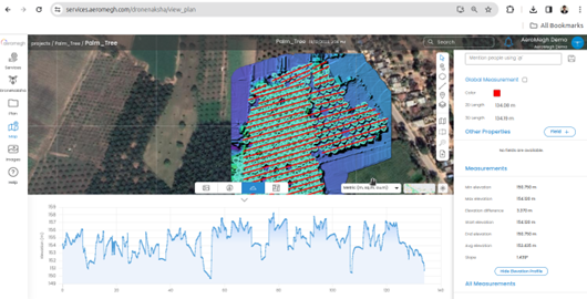 In conclusion, our PicStork and DroneNaksha Geo AI solutions go beyond counting palm trees; they provide a holistic view through elevation profiling. This approach empowers stakeholders in agriculture, environmental studies, and decision-making processes, ensuring a sustainable and informed approach to palm trees in India.
